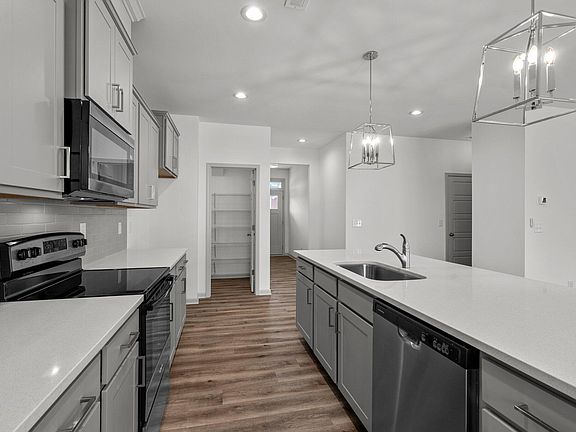 • Bathtub/Shower Combination, Breakfast Bar, Double Vanity, Eat-in Kitchen, Entrance Foyer, Granite Counters, Kitchen Island, Pantry, Smooth Ceilings, Walk-In Closet(s), Walk-In Shower