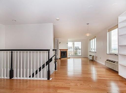 URBAN LIFESTYLE. Penthouse duplex unit in a modern elevator building. Open plan kitchen/living/dining area with a wood burning fireplace and beautiful northeast skyline views. There are two generously sized bedrooms with a full bath and a half bathroom with a washer/dryer. There are new wood floors on the main living level and new wall-to-wall carpeting in the bedrooms. The unit has just been painted. Assigned parking in the underground garage with direct elevator access. Professionally managed. Walk score of 98. Easy access to I-90 & I-95, Harvard, MIT & Boston hospitals.