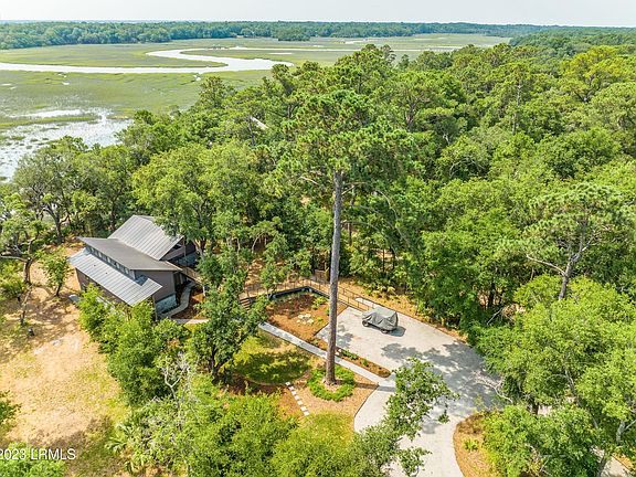 Escape to this immaculate home w/spectacular marsh/water views resting among approx 1.76 acres located near the Fripp Point waterfront community area of St. Helena Island where all things water & solitude await. This unique beauty was recently built in 2021 & creatively designed to not let a single space go to waste, possessing 2 bd/2 full bath, a large screened porch that serves as fabulous add'l living space, Quartz countertops, stainless appliances, Flooret LVP flooring, sauna, tankless water heater, gas generator, outdoor shower, & an abundance of enclosed storage space. Adjacent deepwater lot w/shared dock & an add'l 3 acre tidalcreek parcel separately listed for sale. Be sure to ask your agent for a copy of the Highlights document when you schedule your own private tour today!