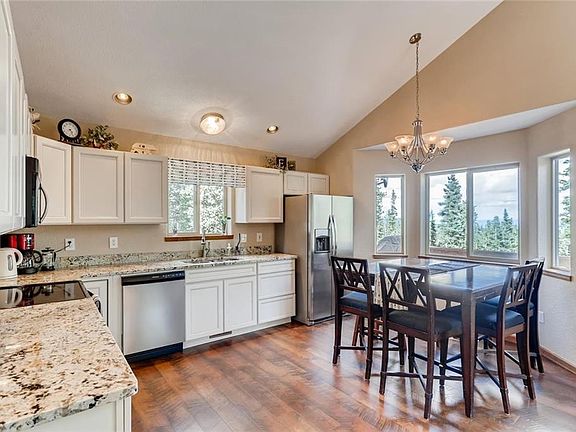 Outstanding Mountain home in Valley of the Sun. Open floor plan, vaulted ceilings and large windows allow for lots of natural light. This remodeled home features granite counter tops, stainless steel appliances and updated bathrooms. Enjoy an evening BBQ or the sunrise with morning coffee from the wrap around deck and take in the wildlife and mountain views! Bonus living room in lower level with cozy gas stove. Fully furnished. Excellent rental history. Only 35 minutes to Breckenridge.