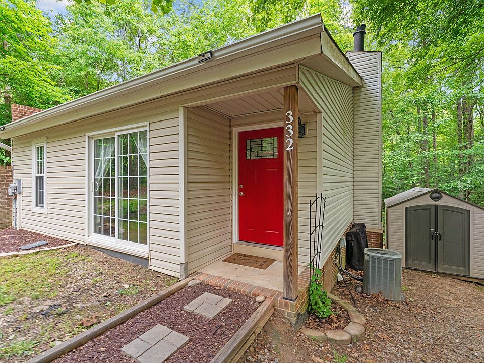 Introducing a rare opportunity nestled in the gated community of Carolina Trace! This three-bedroom, two-bath home boasts a stylish kitchen with white cabinets, stainless steel appliances, tile backsplash, granite countertops, and ample storage in the pantry. Relax in the master bedroom, equipped with a vaulted ceiling, ceiling fan light fixture, deck access, and a full, private master bathroom with a single vanity, tile shower/tub combo, and tile floors. The spacious living room is a host's dream; it contains a lovely wood-burning fireplace and upstairs deck access. Heading downstairs, you'll find two bedrooms, each with outdoor patio access and ceiling fans, as well as a full bathroom with a walk-in tiled shower and, finally, a hallway laundry closet with washer/dryer hookups. The home has NO CARPET with tile and plank flooring throughout. Outside, you will be surrounded by beautiful trees, singing local NC birds, and greenery that ensures privacy and tranquility. Storage of your kayak or paddle board to use on Lake Trace will not be a problem, as this home comes with a large storage shed. The quaint community of Harbor Creek has lovely amenities, including a community saltwater pool, boat ramp, marina, and playground. Look no further than 332 Harbor Trace. Welcome home!