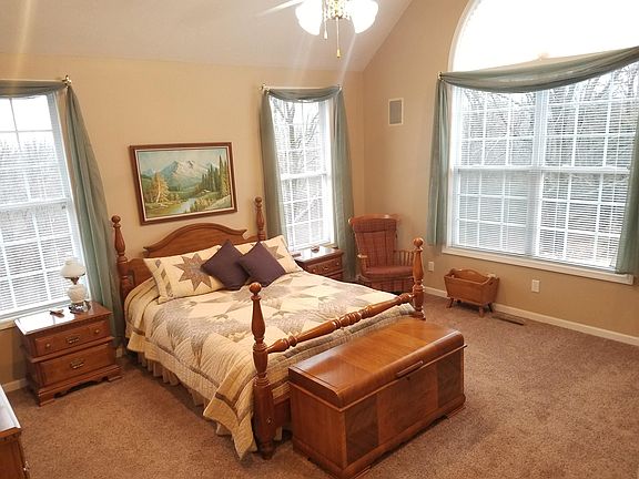More land available with a custom all brick, walkout basement on over 3 acres with views for days! This home is gorgeous with soaring ceilings, hardwood floors, endless windows & wooded views from every angle. Open floor plan & large eat in kitchen featuring center island, pull out cabinet shelves & pantry. Master bedroom is on the main level with en suite bath & you have to see this closet! Upstairs is an open loft perfect for a home office, a full bath, huge walk in attic storage & a serene deck. The lower level features a family room, over-sized bedroom with walk in closet & full bath, more storage, tornado room, full kitchen & one car garage/workshop. All of this is just minutes from Springfield & nestled quietly on top of a hill waiting for it's new owners!There is a 19 acre lake