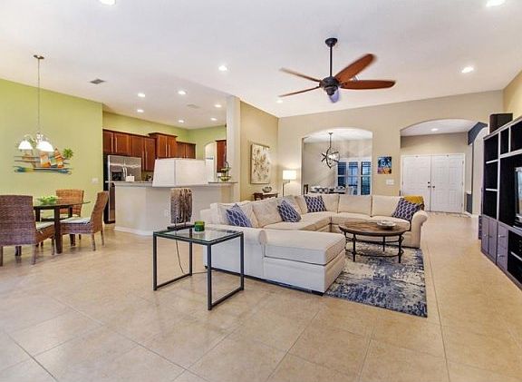 Fall in love with this stunning executive dream home! It has so many incredible amenities, you'll know you're in the lap of luxury the moment you step inside. And the location is incredible as well. This home is close to shopping, nightlife, grocery stores, parks, and much, much more. Never spend another weekend wondering what there is to do. When you live here, you'll be at the center of it all.Step inside and marvel at all the unique touches that make this home special, like the laundry room and the 3-car garage. No detail was overlooked. As you walk through your new home, you'll find recessed lighting, elegant tile flooring, a Great Room that's wired for sound, and rounded doorways. The breakfast bar is perfect for serving appetizers and cocktails to guests when you have friends and family over. The kitchen is a chef's dream! Stainless steel appliances, a breakfast bar, a wine cooler, and plenty of counter space. You'll look forward to cooking dinner for your loved ones. It also leads into the large living room, which is perfect for entertaining. The master suite features walk-in closets and an en suite bath with a garden tub. Walk out onto the covered lanai overlooking the pool and relax after a long day, free of bugs and worries! Make this home your forever home! Call today to schedule your private showing.