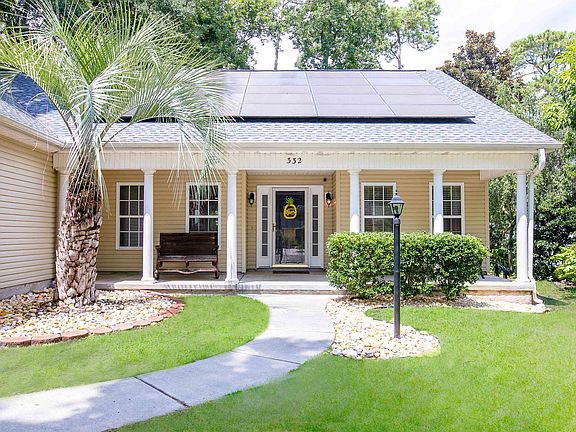 This home is in a quiet golf cart neighborhood with a boat launch into Murrells Inlet at the end of the street. Less than a mile from the ocean, as the crow flies, you will be able to get to the beach on a golf cart in under 10 minutes. You can drive a golf cart to almost everything that you need. There was a new roof installed this year with solar panels that are less than 5 years old. Solar tubes with LED night lights are a great worry free way to have natural light stream into the home. The home is a split floor plan with an open concept living room with vaulted ceilings. The backyard is set up for entertainment with a covered seating bar and a putting/chipping green.