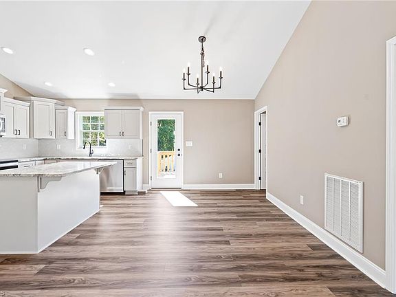 Brand new construction, in a charming, mature neighborhood. The location is perfect - enjoy living in Davidson County, while having all of the conveniences of being in Winston Salem. This home features the always popular open concept, split floor plan with LVP flooring and upgraded lighting throughout. The kitchen is sure to impress with stylish cabinetry and hardware, beautiful countertops, and a tile backsplash. You will love the primary suite with a large walk-in closet and en suite that features matching cabinetry and hardware as the kitchen. Each of the other two bedrooms are split by a bathroom, which is also conveniently located to the living area. Outdoor living is abundant, with a charming front porch and back deck that overlooks the good sized backyard. You are sure to enjoy all that this property has to offer.
