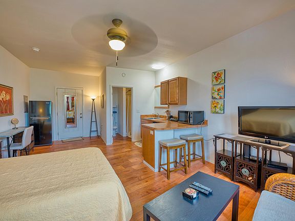 Fully furnished efficiency/kitchenette with AC. Walk to everything. Groceries across the street, Farmers Market across the street, movies down the street, restaurants everywhere (and just down the stairs). Hilo Town shops. You'll love the location of this charming unit.