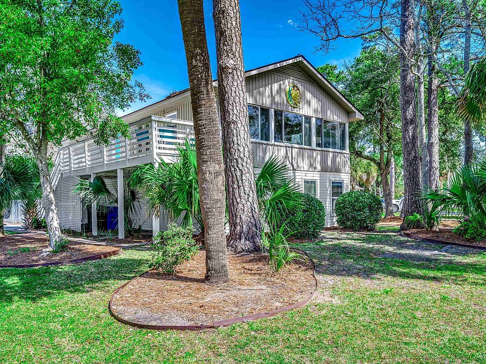 332 Lakeside Drive, Surfside Beach, known as "Playbuoy Mansion," is a two-story, single-family home in a serene residential neighborhood just steps from the pristine beaches of the Town of Surfside Beach. This property sits on an oversized corner lot, boasting 1920 square feet of heated living space. Located in a desirable area with R3 zoning, this property is versatile and suitable for vacation or long-term rentals. A brief .21-mile stroll over the Floral Lake footbridge leads to the 6th Ave S beach access, with the 3rd and 8th Ave S beach accesses also just a .3-mile walk or golf cart ride away. The home features five well-appointed bedrooms, three on the lower level and two on the upper, accompanied by three bathrooms. The upper level houses the master bedroom with an ensuite bathroom, a second bedroom with direct exterior access, a living room, a spacious dining area, and a fully equipped kitchen, which is the heart of the home. The kitchen includes stainless steel appliances, solid surface countertops, and a breakfast bar, perfect for casual dining or entertaining. The bedrooms and living room have ceiling fans, tile & laminate flooring throughout, and a split bedroom plan. The property sells turnkey furnished, ensuring a smooth transition for the new owners. The living room, surrounded by windows on three sides, offers views of Martin Park and Floral Lake. The private pool area is spacious, with a pool deck, a large covered patio, and fencing. The upper-level decks provide extra outdoor living space. Parking is plentiful, with a driveway for four vehicles and additional space for five cars or an RV, camper, boat, or trailer, complete with water/sewer/electrical hookups. Strategically located 0.5 miles north of Surfside Pier and its lively restaurant district, the location offers easy access to local amenities like libraries, parks, sports courts/fields, grocery stores, and a seasonal farmer's market, all within walking distance. It is also conveniently close to attractions such as Broadway at the Beach, Myrtle Beach State Park, the Myrtle Beach Boardwalk, and SkyWheel, with the Myrtle Beach International Airport just a 15-minute drive away. This property is perfect for those seeking a seasonal getaway, a profitable rental, or a permanent residence. Discover the charm of 332 Lakeside Drive. For an immersive preview, visit www.bit.ly/332LakesideDr for a Matterport 3D Virtual Tour.