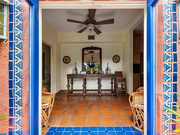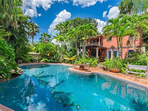 Short Sale. Nestled behind lush landscape on a double lot is this historical Spanish revival home built in 1925 by the famous architect Ralph S. Twitchell. This special home is rich in flavor with ornate fixtures, tile and pottery directly from Central and South America, a very grand living room with a fire place and impressive cypress beams that support the 20 ft ceiling. Featuring unique architecture that will be hard to duplicate in the Sarasota/ Manatee market. In the past it has served as a venue for one of events and weddings. The main house is a 3/2 with wood and quarry tile throughout large. With a large dining room and attached bonus space. The mother in law quarters located adjacent to the main home has a full kitchen, bath and 2 attached screened sitting areas/ porch's . Located in Whitfield estates with close proximity to the airport, downtown Sarasota and the surrounding beaches. The home is being sold as-is with the right to inspect, encouraged to read disclosures, the home will need significant work.