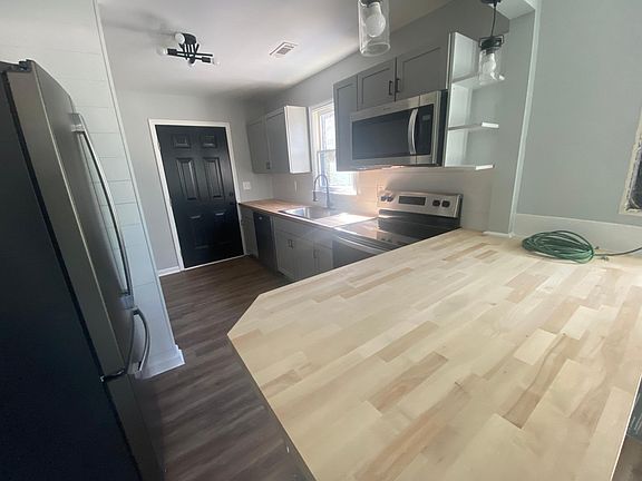 Beautifully remodeled single family home with a big lot. This home sits in a very desirable area between 52 and Henry E Brown Blvd. this property backs up to large woodlands and is perfect for someone not wanting to be n an HOA. Beautiful new luxury flooring with shaker cabinets and butcher block countertops. The bathroom has been completely redesigned and features black hexagon floors!