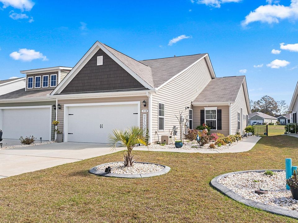 Welcome to 332 Logan St, your perfect retreat on a premium pond view lot. This meticulously maintained home offers a blend of charm, elegance, and modern convenience. Let's explore the updates and features that make this property truly exceptional. From the moment you step inside, you'll be greeted by a sense of light, warmth, and tranquility. Discover upgraded hardware throughout, adding a touch of elegance to every room. This home is a landscaping paradise, with the owner sparing no expense. Attractive curbing and stone highlight the outdoor space, while vibrant rose bushes add a touch of color and elegance, creating a picturesque outdoor oasis. Your furry little friends (and you!) will appreciate the privacy fence that has been installed, providing them with a secure outdoor space to bask in the sun. Enjoy the convenience of modern living from the sleek granite countertops to the stylish flooring; every detail has been thoughtfully curated to enhance your living experience. Vaulted ceilings enhance the open layout, while an abundance of natural light graces the living and dining areas. With spacious rooms and an intuitive layout, whether you're entertaining guests in the open-concept living area or seeking solitude in the cozy bedrooms, you'll find the perfect space to call your own. You'll be delighted to find NO CARPETS ANYWHERE in this home contributing to the flow and charm of the space. Did you know Heather Glen is on the grounds of the former Heather Glen Golf Links and Country Club? Homeowners revel in a spacious clubhouse featuring sprawling verandas, an impressive swimming pool, hot tub, a conditioned fitness center, a fenced dog park, playground area, and even community gardens! So much! This home offers easy access to local dining, shopping, and entertainment options. Enjoy the tranquility of suburban living while still being just minutes away from the vibrant energy of The Little River Waterfront, Cherry Grove Beach, and Barefoot Landing just to name a few. Don't miss your chance to own this stunning property! Schedule your showing today and experience the beauty and comfort of 332 Logan St. for yourself. Welcome home!