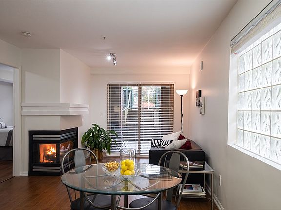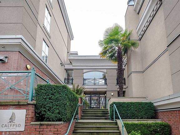 Townhome-like condominium with walk-out access to Lower Lonsdale. Fully screened, the Calypso is well-managed and the pride of the residents, is evident. The gas fireplace, open on two sides, warms a brightly-lit living/dining/kitchen space. Two bedrooms, one at each end. Master bedroom has generous closet space, ensuite with radiant floor heating. Updated lighting, vanities & appliances. Private patio and garden with a gate opening out to 4th Street. The direct outdoor access is ideal for dog owners. Rentals available (1yr min). Secure storage; 2 parking spots, one with a bike storage rack. New B-line bus stops at 3rd Street entrance. Easy downhill stroll to Lonsdale Quay, Seabus and a fine selection of restaurants, shops and services. Open House (appt) - Sunday 27th, 11am -2pm