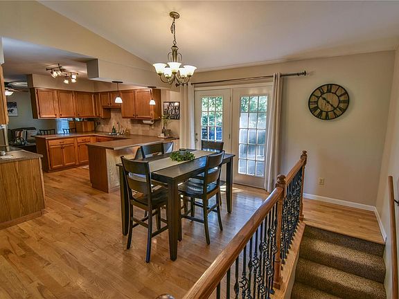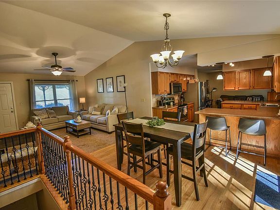 This home is next to park, walking trail, very convenient location. Move in ready, open floor plan, with a bonus room! Partially finished lower level with bedroom and walk out. Ingress and egress in bedroom. Full bath. Perfect for teenage children! Deck, patio and fire pit area in back yard perfect for entertaining. Nice large shed for storage. Very private. NEW AC in 2021! Remote entry on both garage doors and gutter guards have been added.