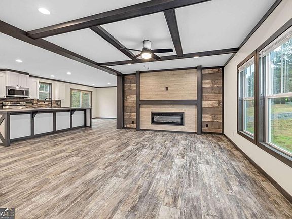 Welcome home to country comfort! This beautiful brand-new 2025 Clayton Boujee model sits on a level +/-1-acre lot, offering plenty of space for family fun and outdoor living. With 3 bedrooms and 2 full baths, this home features an open-concept layout designed for easy living and entertaining. The cozy fireplace and beamed ceiling create a warm gathering space in the living room, while the spacious kitchen includes a large island, stone backsplash, and lots of storage-perfect for family meals and get-togethers. The primary suite is a true retreat with his & hers closets, a large soaking tub, separate shower, and double vanities. You'll also love the convenient laundry room and large back deck overlooking a level backyard, ideal for kids, pets, and weekend barbecues. Enjoy peaceful country living with modern style and room to grow-this one is ready for your family to make it home!