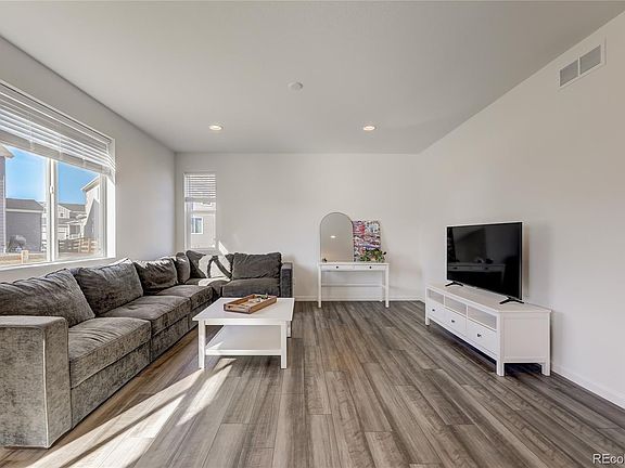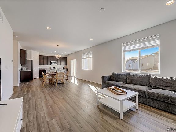 Welcome to this beautiful home located in the desirable Morgan Hills community! Less than two years old, this home offers a contemporary design with an abundance of space and modern amenities. One of the highlights of this home is its direct access to an incredible trail system, perfect for leisurely walks to the nearby dog park or downtown Erie, and ideal for biking enthusiasts looking to explore the surrounding towns. With convenient access to Denver and Boulder, as well as the nearby mountains, outdoor adventures are always within reach. Upon entering, you'll be greeted by a grand main level featuring an open layout, characterized by easy-maintenance vinyl plank floors and ample natural light. The chef-worthy kitchen is equipped with granite countertops, stainless steel appliances (less than a year and a half old), a desirable gas range, walk-in pantry, and a spacious center eat-in island. Perfect for entertaining, the kitchen seamlessly flows into the backyard with a unique patio, creating a seamless indoor-outdoor living experience. Additionally, the main level features a front office area with French doors and large windows, providing the perfect space for productivity or relaxation. A main level bedroom with a nearby full bath offers convenience and versatility for guests or multi-generational living arrangements. Upstairs, you'll find three generous-sized bedrooms, including a primary suite with an en-suite bath and large walk-in closet. The upstairs loft area offers a cozy retreat for indoor activities or relaxation. The unfinished basement provides ample room to grow and customize to your needs. Other notable features include a large 3-car garage with an electric vehicle charging station and an oversized backyard, perfect for enjoying the upcoming spring season. Welcome Home!