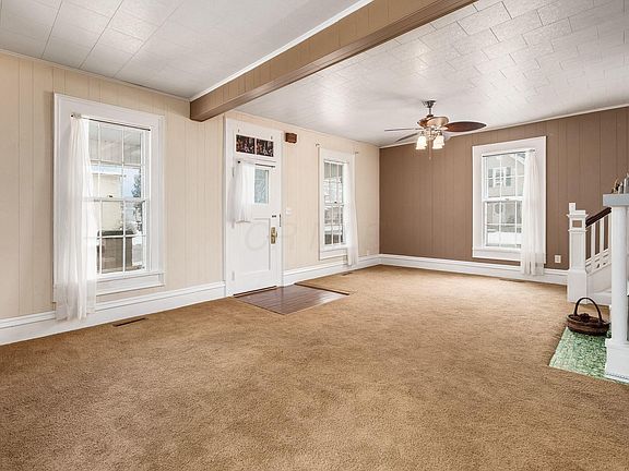 Nice two story home in Utica featuring 3 bedrooms, 1.5 baths on a corner lot. First floor features a living room with gas log fireplace, dining room and spacious kitchen. Kitchen features laminate floors, white cabinets and tile backsplash. Second floor features 3 bedrooms with walk in closets, sunroom and updated full bath. Patio with fire pit makes entertaining a breeze. Storage shed and fenced yard. Updates include roof, some windows, furnace, water heater and so much more. Schedule your private showing today.