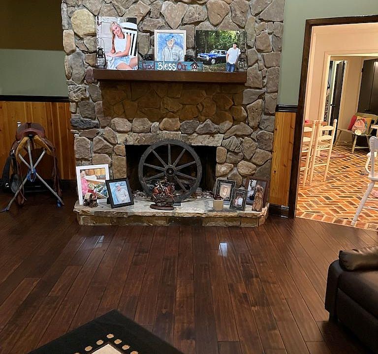 6.14 ac M/L, Great place to raise a family. Wooded and private, 4 bedrooms with 2.5 bathrooms. Custom brick floors. Laundry room with sm. office. In Living room a large fireplace with gas logs. Large back yard with storage shed and a lg. above the ground pool for family fun. A 2 car carport. Sunroom on the back for small kids to play.