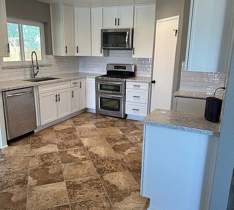 Remodeled 3 beds 2 bath house 1350 Sq ft. Kitchen complete new cabinets, quartz counter tops, all new appliances. New AC, water heater, furnace. New flooring tile throughout. New windows. Large pantry. Bedrooms 5X5 closets. Ceiling fans in Master bedroom, Living Room. Mature trees. A must see to appreciate. Renter responsible for electric, gas, garbage, water, all utilities . No smoking. First and last month upon signing.