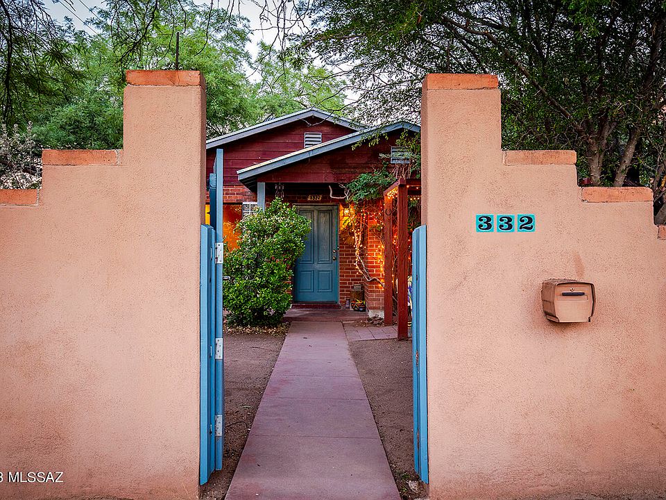 Super cute Sam Hughes House and Guest. First time on the market! The main is a wire-cut brick. 2 Bed, 2 Bath with a studio/den/dressing room, you choose. Lots of tile and wood. Floor plan has good flow with a courtyard in the front and back. The guest is frame stucco with concrete floors and sensibly appointed. Carport and additional parking is between the house and guest, affording privacy to both. Mature landscaping. Great central location, walkable to the Friedman block and the Sunshine Mile on Broadway, Flora's Market Run and Tumerico on 5th, and the U of A. Don't wait on this one. Call for an appointment today! Offers will be reviewed Monday, September 18. OPENHOUSE Saturday, September 16, 10am to 1pm.