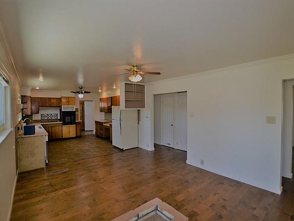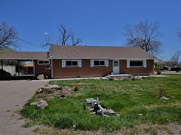 Nice spacious ranch home with open floor plan. 2 bedroom with 3rd possible bedroom. A nice den, big kitchen and separate dining area. Lots of cabinets and counter space in the kitchen. Newer wood laminate floors and newer carpet. Recent interior paint. Very clean and sharp!. Nice irrigated lot with fenced back yard, storage building, garden areas, mature trees, and lots of flowers. 1 car carport and 1/2 share of Hydraulic Ditch stock, plus the pump.