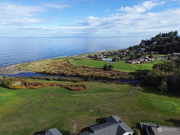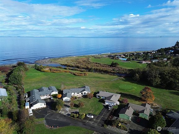 Amazing Water & Mountain Views in every direction, Look North to the Straits, look South to the Olympic Mts. Only steps away from the beach, Morse Creek & golf course. Single-level, 2587 sf, 3 bedroom, 2.5 bath home with open-concept Living Room, Formal-size Dining, large Kitchen w/island and built-in desk area. Spacious Family Room with unlimited possibilities such as office, library, hobby/crafts and/or media/game room. Primary bedroom has en-suite bath & walk-in closet. Lots of built-in shelving, hardwood floors, laundry room and heat pump. Detached, 480 sf garage. Driveway has room for extra parking, Situated at end of road on cul-de-sac. Enjoy 4 Seasons Ranch amenities...Seasonal pool, community beach, horse barn & 9-hole golf course.