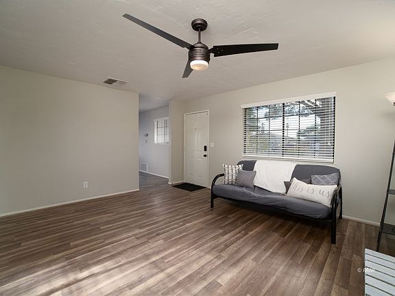 3 bedroom 1.75 bath home in great cul-de-sac location! New paint throughout interior and exterior trim. New laminate flooring in kitchen, living room, and hallway. Popcorn ceilings removed, new texture and paint in living room and hallway! Freshly refurbished kitchen cabinetry, brand new granite countertops, and backsplash installed! Fridge and oven/range installed new in 2015, new over the range microwave and dishwasher installed last year. Custom blinds on all windows, ceiling fans in all 3 bedrooms, living room, and the covered patio. Both bathrooms have been updated and freshly painted. Established pine trees front and back, large patio, hot tub service installed and ready to use. Large backyard has tons of potential for a nice grass area, pool, large garden, etc. South side fence rebuilt 2 years ago, along with new double gates and pedestrian gate for side access, RV or trailer parking. Great home in a great neighborhood! Spa will be removed by close of escrow.