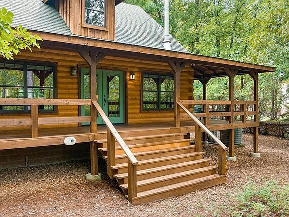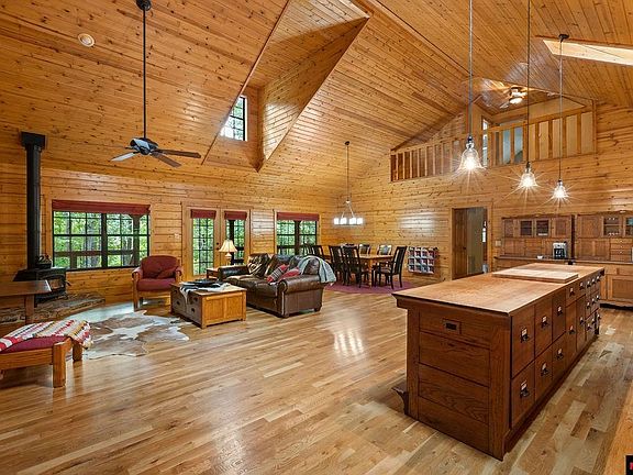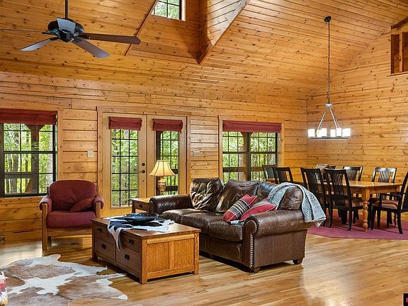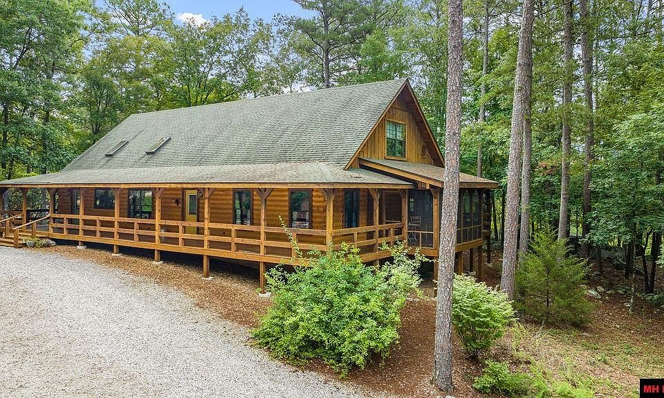 Escape to your dream log cabin nestled amidst 10.7 acres of serene woods, just 2 minutes from the breathtaking Norfork River and the Ackerman Handicap river access. This beauty was custom built by Tim McArdle in 2008 and boasts 3 bedrooms, 2 baths, and an expansive 2,300 square feet of rustic elegance. Admire the soaring vaulted ceilings that compliment this wide open floor plan, large kitchen with antique general store seed counter that serves as a sprawling bar, & a 1953 Chambers gas stove in mint condition. The 30 X 40 detached garage offers ample space for your vehicles & river boat. Meander down to the quaint little "she shed" situated along the flowing creek. Sip coffee from the front of your wrap around porch, or enjoy an evening cocktail on the screened in patio. Step into a storybook setting where tranquility and nature harmonize and don't miss out on this idyllic retreat!