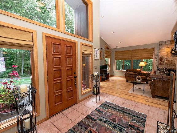 A Price on Priceless! GET AWAY TO LIFE in this unsurpassed property with 6.38 acres, a four-bedroom Contemporary, and a detached 30x50x14 heated garage. Scenes of privacy welcome you as soon as you pull in the driveway. Quality has been the first consideration in this contemporary, starting with 2x6 exterior walls, engineered lumber floor, and more. You'll love the living space with an open floor plan with vaulted ceilings and wall of windows, which merge the indoor and outdoor space in perfect harmony. Upstairs you'll find the private master bedroom suite with vaulted ceilings and a spacious master bath. There are three bedrooms and a laundry room (complete with a built-in iron center) on the first floor. The lower level is the perfect spot for game day or hanging with your closest friends. The Lopi wood stove keeps you toasty, and the bar with beverage refrigerator, sink, and microwave keep everyone happy! And we can't forget about the fabulous outdoor entertaining on your patio with LePanyol wood-fired pizza, fire pit, Weber Summit grill, and a mahogany TV cabinet. And for some, this may be the most important feature - a detached garage away from the house, ready for you to tinker, build or create. The space is impressive with 200 amp service, propane furnace, and two posts 9000lb car lift. This is offered on a dead-end road leading to Reservoir and with a corner of the property bordering Meshomasic State Forest. Can you imagine all this for $589,000?