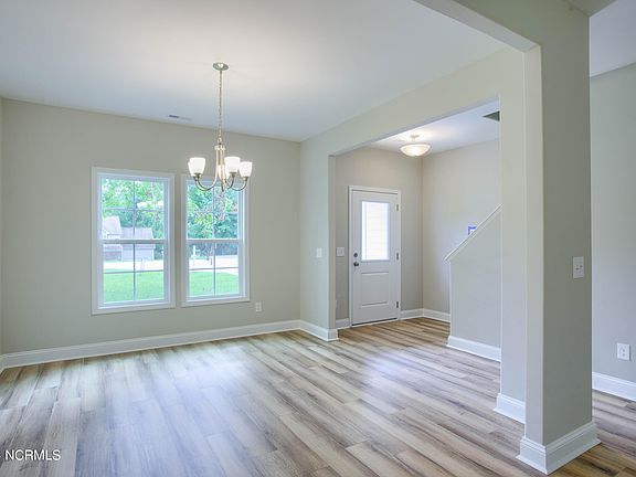 Welcome home to 332 Osprey Point in the ever popular Creeks Edge subdivision . The ''Winston'' floor plan offers expansive and cozy living spaces, situated in a serene coastal setting mere minutes from the picturesque beaches of North Carolina and convenient to Stone Bay. This 2,097-square-foot residence offers architectural shingles, low maintenance vinyl siding, and stunning landscaping. Step inside to discover inviting and upgraded features, including smooth 9-foot ceilings on the first floor, soft close cabinets, granite countertops, built in microwave, built-in drop zone upon entry from the garage, contemporary lighting, and modern paint and finishes. Upstairs, you will find an oversized laundry room, the primary bedroom with a walk-in closet, and generous size guest bedrooms, creating a harmonious living environment. Welcome to a place where comfort meets style in every detail.