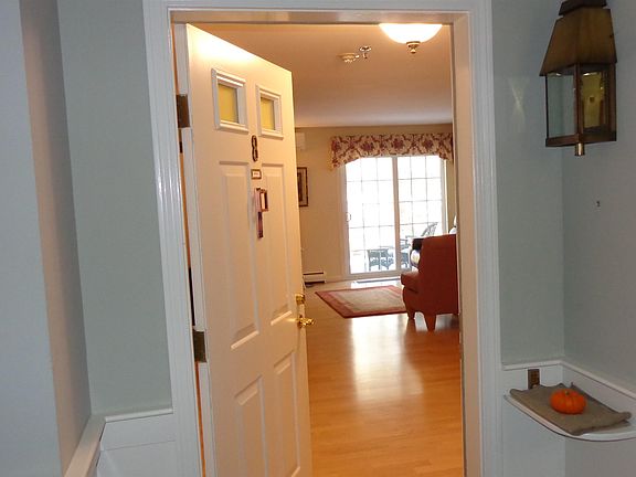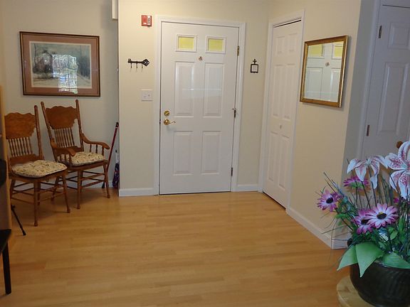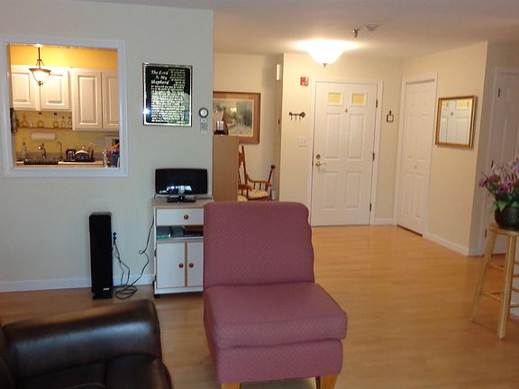 Lyon Brook offers a comfortable, independent lifestyle that allows owners and residents to simplify their lives in a warm community atmosphere. A caring staff treats residents and owners with dignity and respect, while offering amenities not found in other condominium communities. Meals are optional in the cozy community Dining room, complete with fireplace. There is also a welcoming sunroom, as well as a Library which offers a comfortable retreat to relax and read your favorite book. Unit 8 is on the first floor and had many renovations around 2019-2020. The small bedroom, living room, foyer, dining area, and kitchen now feature attractive, light wood flooring. The kitchen cabinets were also replaced along with the appliances. A mini-split A/C was installed in the living room, along with remote control window treatments. The apartment enjoys a lovely walk-out patio area off the living room and benefits from morning light throughout the living space. A nearby door off the hall provides access to the parking area. Basement access is also nearby; here the owner of this unit has a 6’ x 8’ storage “cage”. If you have never visited Lyon Brook and are considering down-sizing, you will be very impressed and pleased with what it has to offer.