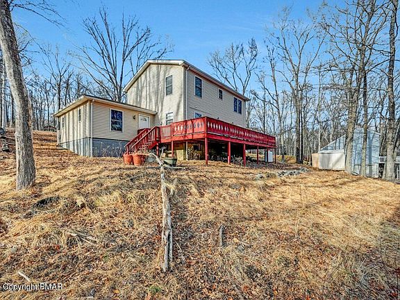 4BED/2BATH COLONIAL Located In Amenity Filled Community Pine Ridge. This Home Features A Spacious Layout w/ HW Floors, Kitchen Island w/ Updated Countertops, Gas Fireplace , Family Room & Large Unfinished Basement To Make your Own. Plenty Of Storage w/ Utility Shed & Garage. Take In The Nature On Your Large Back Deck Or Enjoy Your Morning Coffee On Your Front Covered Porch. Near All Major Pocono Attractions , Restaurants & Shopping, Close to Route 209& I-80. Home Is Being Sold As -Is. Bring The Family & Make This Country Charmer Yours Today!
