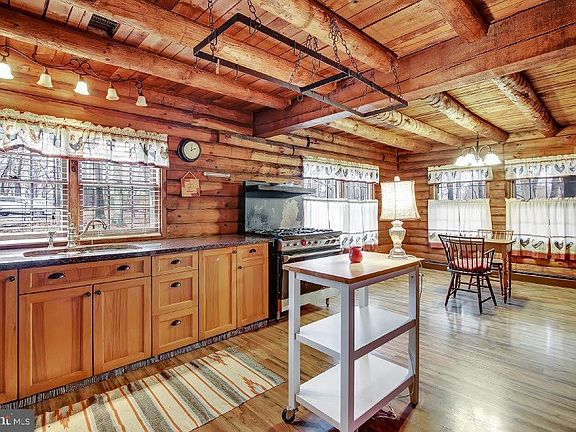 Log Cabin Living!! Charming 4 bedroom, custom Cape Cod Log Home nestled on a 1.73 secluded acre lot with close proximity to I-95, Route 40 and Harford County. This inviting property has many stylish features. The large eat-in kitchen includes beautiful granite counter tops, gas stove, double stainless steel sink and a huge pantry with loads of storage. The living room offers a stunning floor to ceiling Field stone wood burning fireplace with a rustic barn wood mantel. Perfect for snuggling and roasting marshmallows with the family on chilly fall and winter nights. The master bedroom and bathroom are conveniently located on the first level. The open staircase leads to the second level which features 3 additional bedrooms and second full bathroom with a luxurious claw foot tub. Gorgeous wood inlay is highlighted on the ceilings leading to the second story. The lower level has 2 finished rooms which could be utilized for many different options including a family room, office, playroom, exercise room or additional bedrooms. The opportunities are endless! A large laundry and utility room are also located on the lower level. French doors lead to the patio and spacious backyard area where you'll find a stable/barn (with a fenced area) or workshop. Perfect for your horse, goats or the hobbyist. Sit on your sizable covered front porch in your rockers and enjoy the abundance of surrounding nature. Peaceful and private, a perfect location if your looking for a convenient, one of a kind, off the beaten path home.....332 Principio Road.....Welcome Home!!!!