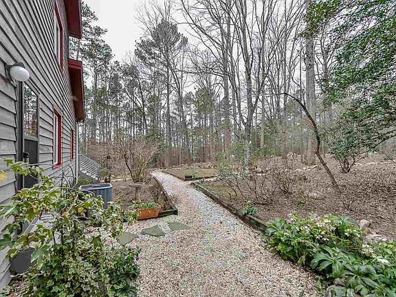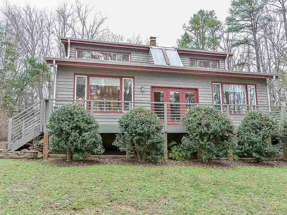 Beautifully landscaped setting on over 5 quiet acres, this passive solar gem is move-in ready. Vaulted ceilings, abundant windows, brick floors and natural cedar for a cozy retreat feel. Kitchen features custom cabinets & quartz counters - open to the dining room. Wood stove can heat the whole house & has a solar water heater! Lots of storage in-house. Marvelous outdoor spaces: garden, rock-lined trails & sheds. Soak up the Spring on the south facing deck & listen to the Haw River, just 1/2 a mile away!