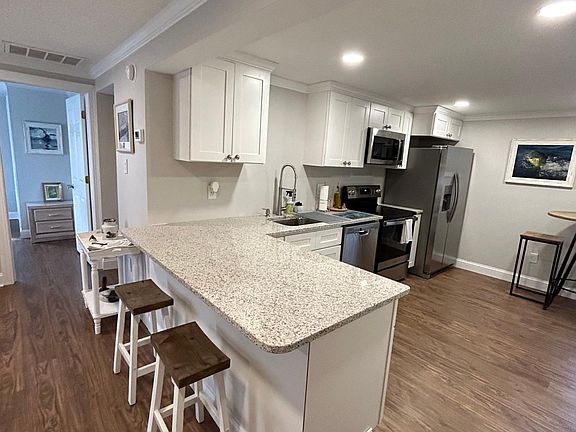 Freshly renovated condo. 2 bedroom, 1 bath. Fully updated kitchen, open living room concept with all new appliances. LVP flooring throughout, granite countertops. Washer and dryer. The unit is fully furnished and available for mid term rentals with a three month minimum stay. This is a fully furnished condo, all utilities including water/electricity and internet are covered in the rent if you rent it fully furnished, mid term 3 month minimum lease option. There is an option to rent on a yearly basis unfurnished.