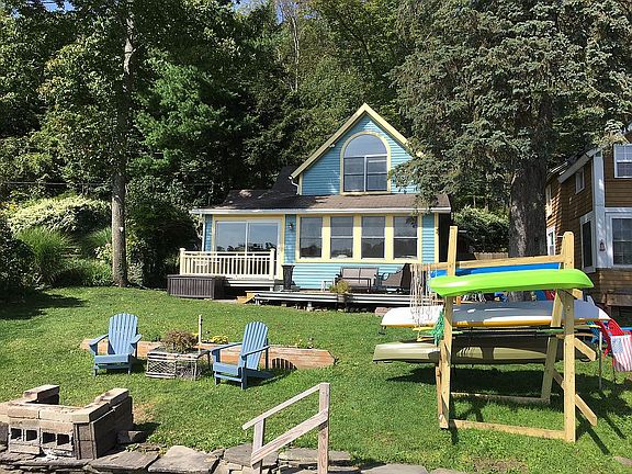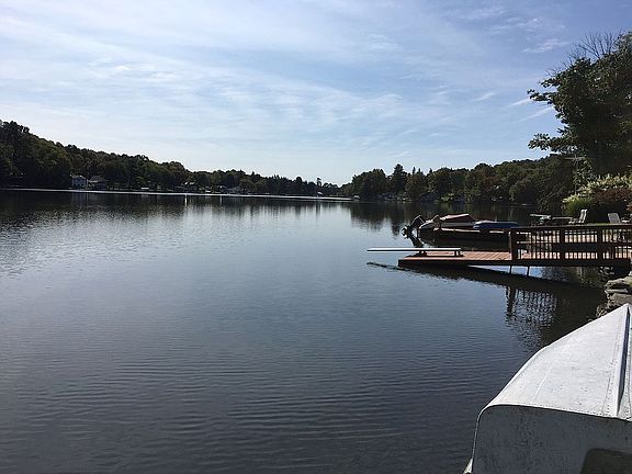 MAGNIFICENT Year-Round lake house minutes from NY. Stunning lake views from almost any room. Open floorplan blends old & new: Original wood beams, wood floors and native stone fireplace + Modern Silestone Kitchen with Jenn-Air Island grill & modern appliances open to Sunny Dining area and deck. New Parking area for 5 cars. New metal roof & Side decking 2019. Motorboat lake up to 17 Ft & 90 HP. Personal property not included. Buyer to verify taxes.