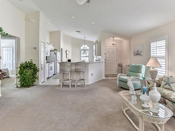 2/2/2 - Maintained home (lawn care, exterior paint, and roof repair/replacement). Upscale - 55 plus gated community of the Wellington at Seven Hills. Plantation shutters, herringbone tile in wet areas, enclosed and tiled lanai. AND private no build behind back yard. Neutral Corian in the kitchen, laminate counter tops in baths, each bedroom with walk in closet, eat in kitchen, breakfast bar. Enjoy the Florida lifestyle at the club for lunch/dinner, Olympic size pool, fitness, tennis, billiards, shuffle board, dozens of activities, clubs/classes, and social events. Some furniture available under separate Bill of Sale.