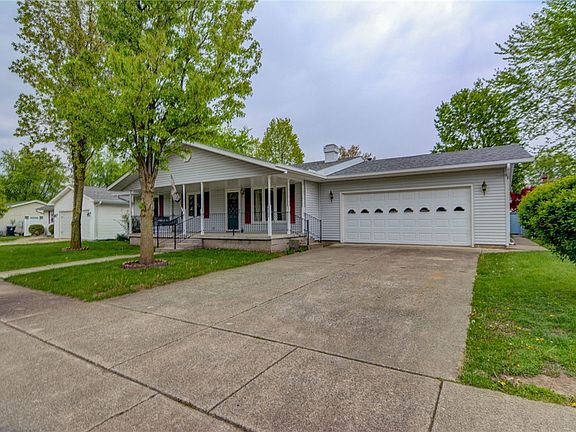 This home has been well loved by the same owners the last 20+ years! 3 bedroom, 2 bath ranch in Mt Zion School District located in charming neighborhood with great curb appeal. Enjoy the large storybook front porch lounging on the swing or relax on the back covered patio perfect for gatherings. The backyard is partially fenced in. The living room features large windows for natural light and a gas fireplace for those cozy evenings. The spacious master bedroom presents two separate closets and a master bathroom. The kitchen has an abundance of beautiful cabinetry with lots of counter top space, pantry, dining area, and sliding doors to the patio. The 2.5 attached garage has a built in office and plenty of cabinets for extra storage. The additional 1 car (10 X 20) detached garage located in the backyard has heat, electricity, cabinets, garage door and workshop area. This garage could be used for a "man cave", "she shed", gardening shed, workshop, etc. The possibilities are endless! New thermostat in 2023. The roof was replaced in 2014. Estimation of water heater installed in 2012. All appliances stay. Call for a tour today! This home won't last!