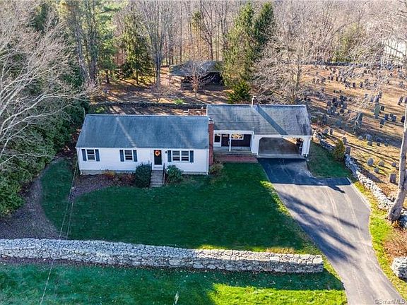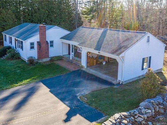 Close to the center of town! This truly unique Ranch home offers 1, 500 sq ft of living space, 3 bedrooms and one and a half baths all on a beautiful private 0.76 acre lot. The home is surrounded on three sides with an amazing well cared for stonewall and a drive through garage (yup! you can drive right through it!) that leads to a large workshop at the back of the property. The workshop has electricity, lots of storage and a garage door to accommodate another car. Home features a spacious family room with high ceilings, abundance of natural light, wood stove, central air through out and easy access to the freshly painted back deck. The kitchen is large enough for an eat-in kitchen and the appliances convey. The large dining room has gleaming hardwood floors and a fireplace for ambience. Home is turn key and waiting for you! New septic and leaching field just installed. This is an estate sale and is being sold "as is".