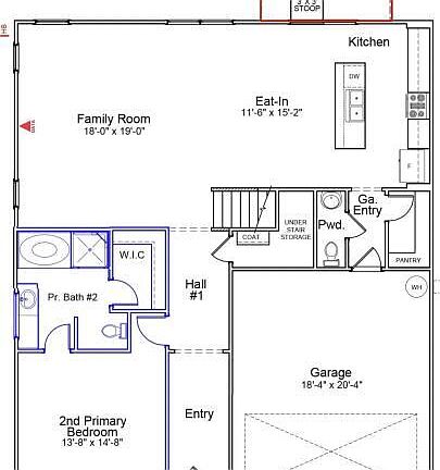 The Turner is a two-story open plan home with six bedrooms and four and a half baths. There is a second primary bedroom downstairs, equipped with walk-in closet and a full bath, off of the entry. The family room is open to the kitchen and eat-in area. The kitchen features a large island and walk-in pantry off of the garage entrance. There is also ample under stair storage. The upstairs primary bedroom features a large walk-in closet, linen closet and a separate tile shower and soaking tub. Two of the secondary bedrooms share a full bathroom. The other two secondary bedrooms share a jack and jill bathroom. Loft and laundry room are also conveniently located upstairs.