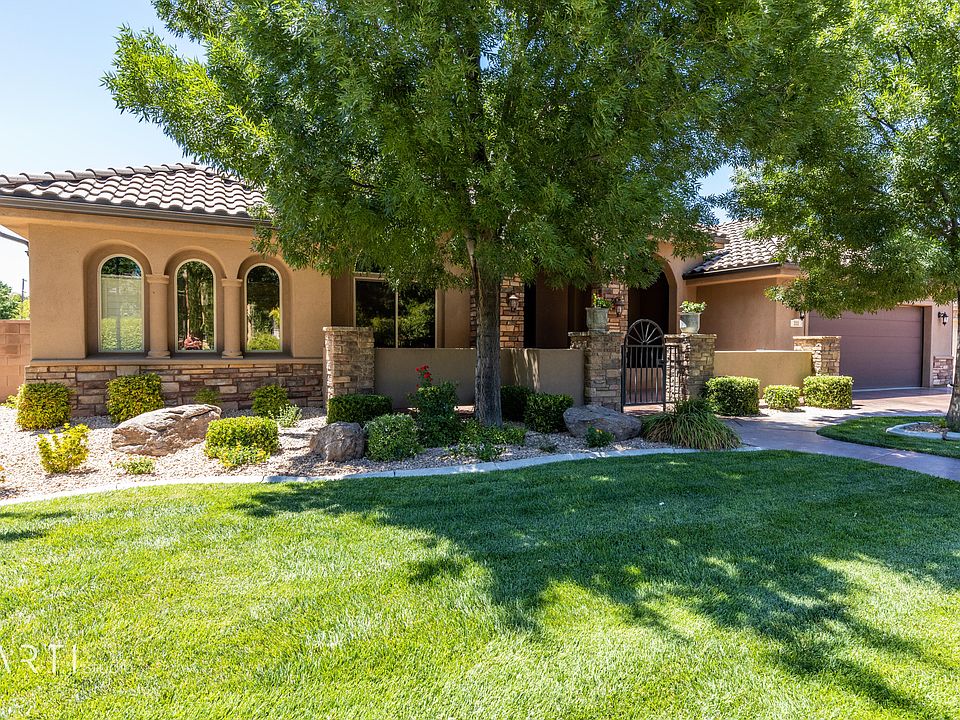 Beautiful .60 acre Estate tucked away on a quiet cul-de-sac. Main home features oversized front courtyard, stunning 17' grand entry, coffered ceilings w/ 9'-17' plate, custom cabinetry w/ built-ins throughout. Finest outdoor living w/ lush parklike setting. Commercial grade automatic RV gate on side leading to detached RV Garage/Workshop equip to store 4+ cars & more plus attached private Casita.