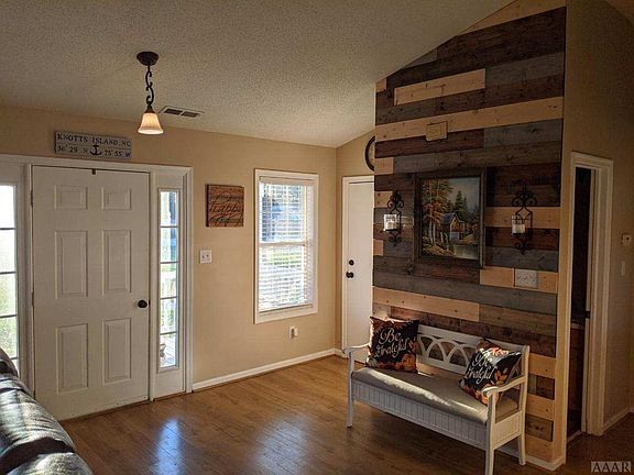 Must see! This spacious 3 bedroom ranch is just like brand new-new roof, new siding, new appliances, new hot water heater. Open living area boasts a cathedral ceiling in the great room along with a wood burning stove, perfect for relaxing on cold winter nights. Large master bedroom has a tray ceiling and a large walkin closet. FROG has a full bath. This house sits on almost an acre. Enjoy country living on Knotts Island! Easy commute to VA.