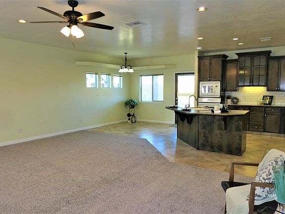 OPEN FLOOR PLAN NEAR GATEWAY SCHOOL! New carpet and front landscape rock just laid! 1693 sq ft of living space. Originally built by Randy Johnson of Cardinal Plumbing fame. Great room as one steps in features 9' ceilings, ceiling enclave shelving, and white walls. Elegant kitchen with double sink/cabinet island, granite countertops, and lots of dark rich wood cabinetry. Private master bedroom off of the right of the roomy living area has an upgraded bronze ceiling fan overhead. Master bathroom features double sinks, granite countertops, large walk-in ceramic tiled shower, a huge walk-in closet, and his/her built-in clothes hampers. Other bedrooms are spacious and sunny with more bronze fans. Hall bathroom also shines with tile countertop and iron tub. Backyard is deep and wide and ready for buyer's finishing touches. JUST A HOOF AND A HOP TO GATEWAY SCHOOL!!
