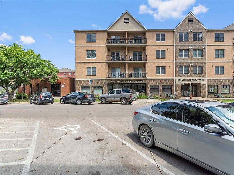 Downtown Iowa City living with the best views in the building! Custom floor plan completely remodeled in 2010, new LVP in 2017. Lots of natural light, motorized shades. Oversized primary suite with full bath, private bathroom with whirlpool tub. Stainless steel appliances & tile details in bathrooms & kitchen. Designer light fixtures & city views from every room. Washer & dryer plus underground parking space! Secured building with elevator. Balcony overlooks Linn Street.