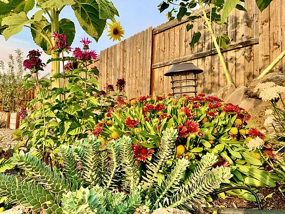 This well kept turn-key home boasts a bright and open floor plan with front yard mountain views and a gardeners dream in the back yard. The garden includes fully irrigated terraced beds, herb garden, raspberry patch, and an apple tree. All which can be enjoyed from the warmth of a beautiful wrap around fire pit... plenty of seating for family and friends. Inside you will find yourself comforted by the spacious flow and feel of the home design. Bright lighting illuminates every corner of the house, never leaving you in the dark. Central heating and cooling along with natural gas appliances keep the costs low and the comforts high. The master bedroom and bathroom are equipped with a walk-in shower and closet alongside a double sink vanity. The two car garage and four car driveway leave you with plenty of space for projects and storage. Moreover this Like-new home sits atop a quiet family friendly Cul-De-Sac keeping traffic levels down giving you the peace and quiet this home embodies.