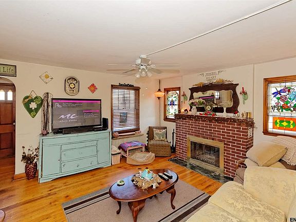 Spacious 4BR brick cape within walking distance to local shopping and the bus line. HW flrs throughout. Formal LR with masonry brick fire place. Formal DR leads out to large deck overlooking back yard. Updated tiled full bath. Nice kitchen area with side entry. 2nd flr features two good sized bedrooms & lots of storage space. Low Colonie taxes and super convenient location. Newer roof and furnace. Easy to show.