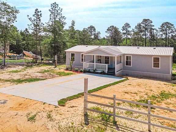 $10,000 PRICE IMPROVEMENT PLUS $10,000 SELLER CONCESSIONS.....to lower mortgage interest rate, put towards closing costs or a little bit of both. The latest upgrades include: 1) NEW HVAC, 2) NEW WOOD BURNING FIRE PLACE AND ATTRACTIVE TILING, 3) A NEW HOT WATER HEATER AND 4) NEW STAIRS FROM THE PORCH TO THE BACK YARD. Lending agent Cynthia Trisch, NMLS 2036370, Lending House, 850-462-3555 is offering attractive financing for this 'Subsequent Move Manufactured Home'. She also offers to the buyer who uses her services, a credit at closing of up to $650 to cover Home Appraisal Costs. The home has a concrete driveway, 2 new covered porches and a metal roof. The exterior of the home is adorned with Hardy Board siding and skirting. The bathrooms have been upgraded with all-new self-closing cabinets, tiled floors and showers. LVP flooring throughout. The kitchen boasts natural wood cabinets, granite countertops, new appliances. Recessed lighting has been installed throughout the home, providing a modern and well-lit ambiance. Additionally, new ceiling fans contribute to improved air circulation and comfort. The interior has been freshly painted in a soft white color, creating a clean and bright atmosphere.