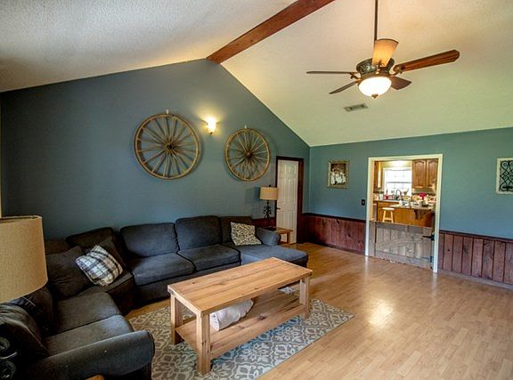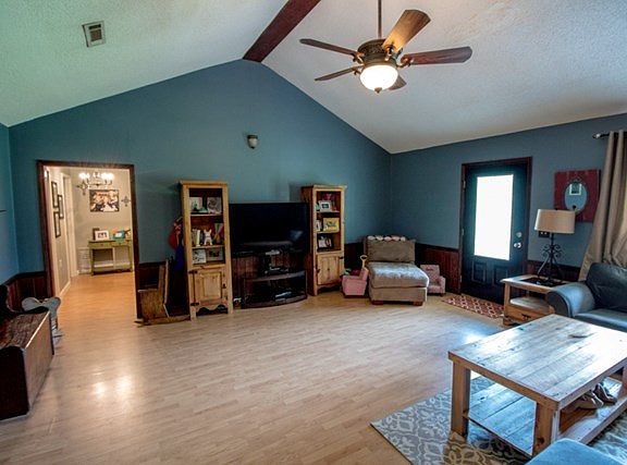 Very nice 3bed/2ba country home. Split floor plan - vaulted ceiling in living room. Large master bedroom and master bath - jacuzzi tub - separate shower. Spacious kitchen w/ lots of counter space - kitchen and dining flow together. Extra room/office located just off the dining area and leads out to back porch. Outside features work shop, large front yard w/ shade trees, and lots of room to roam behind the house. Lots of deer and turkey in the area. Large front porch, perfect for swinging - Metal