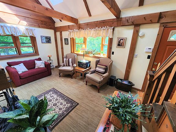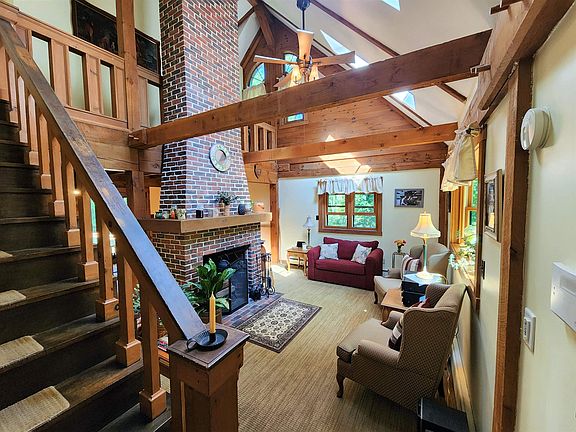 Meticulously cared for Post & Beam style home. Stay cozy by the central fireplace or enjoy tranquility on your oversized deck with gazebo. Open concept main floor with cathedral ceiling in living room. Pellet stove for alternative heat and additional hookup for wood stove in place. Automatic back up generator. Move in Ready 3D Tour Available