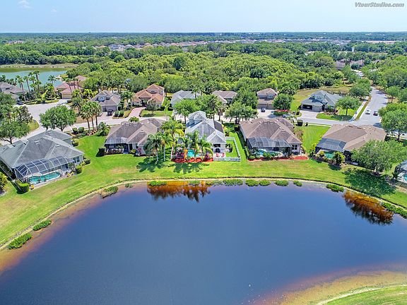 WELCOME HOME to this gorgeously appointed Homes by Towne "Raleigh IV" 4-bedroom floor plan in sought-after GreyHawk Landing. You'll love the curb appeal as you approach this recently-painted abode with stone facade surrounded by lush landscaping. A perfectly-sized 2643sf split layout with soaring ceilings has the Owners' Suite and 2 beds downstairs with an additional bed, bath and open loft area upstairs. Enjoy breathtaking views of the sparkling lake from just about any room in the house, or head out to relax by the solar- or gas-heated saltwater pool and spa on the spacious paver lanai and its adjoining patio area. The open kitchen has been newly updated and features 42" wood cabinetry, custom glass and stone backsplash, stainless appliances, breakfast bar and center island. The energy-efficient main HVAC, pool equipment and cage screens are all new within the last few years. Some of the many other features and upgrades included are: Wood flooring in the entry, living and dining rooms; Architectural arched doorways and nooks; 2 fenced dog runs; 5 garage storage racks; Wired for surround sound; Plumbed for easy water softener installation; and more! Seller offering up to $5000 toward buyer closing costs! GreyHawk Landing offers fun for all age groups and interests! Numerous bass-stocked ponds, over 2 miles of nature trails, two community pools - one with a water park! Fitness center, lighted tennis courts, basketball court, sports fields, and playgrounds. Currently zoned for A-rated schools.
