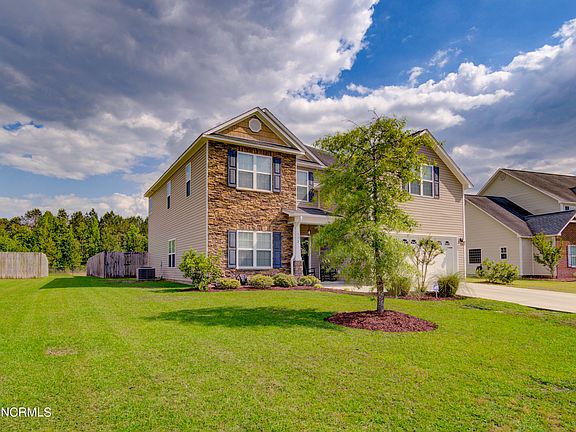 Welcome home to this large stunning 5 bedroom upstairs and 1 bedroom downstairs, 3 bathroom home in the beautiful neighborhood of Great Neck at Carolina Plantations. The Athens A floorpan has a lot to offer. The kitchen has a nice sized island with seating area, a good sized eat in area in the kitchen, and a formal dining room. Gorgeous wood floors in the formal dining room. Large family room and formal living room. Upstairs you will find 5 more good sized bedrooms to included your primary bedroom and primary bathroom. Outside you have a large fenced in yard and nice sized patio perfect for enjoying those Carolina evenings with no neighbors behind you. All this and close to area schools and shopping so don't miss out on this beautiful home.