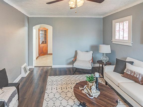 Welcome home to this move-in ready bungalow. Beautiful stain glass windows upon living room entry. Home features an updated kitchen with ample cabinetry, flowing into a separate dining room complete with a charming built-in corner cabinet.